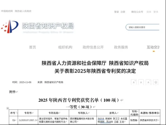 近日,西安赛隆增材技术股份有限公司的专利“复合密封组件、等离子旋转电极雾化制粉设备与制粉方法”荣膺2025年陕西省专利奖一等奖,彰显了企业在增材制造领域的硬核创新实力。